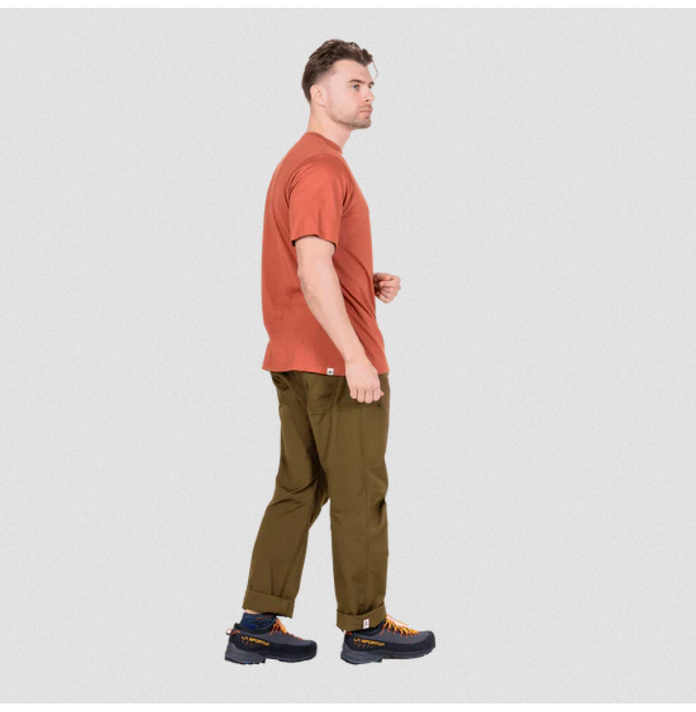 Πρόκειται για ένα κλασικό κοντομάνικο μπλουζάκι κατασκευασμένο από 100% οργανικό βαμβάκι με βάρος περίπου 190 g/m², που προσφέρει άνετη, απαλή και αναπνέουσα αίσθηση στο δέρμα. Διαθέτει στρογγυλή λαιμόκοψη (crew neck) και στο μπροστινό μέρος φέρει αποκλειστικό γραφικό σχέδιο/print με το λογότυπο της εταιρείας, δίνοντας ένα casual και σύγχρονο στιλ ιδανικό για καθημερινή χρήση στον ελεύθερο χρόνο ή outdoor δραστηριότητες. Η εφαρμογή του είναι κανονική (standard/regular fit) και το προϊόν υποστηρίζει τη χρήση 100% οργανικών υλικών, ενισχύοντας τη βιωσιμότητα και την άνεση του ρούχου.