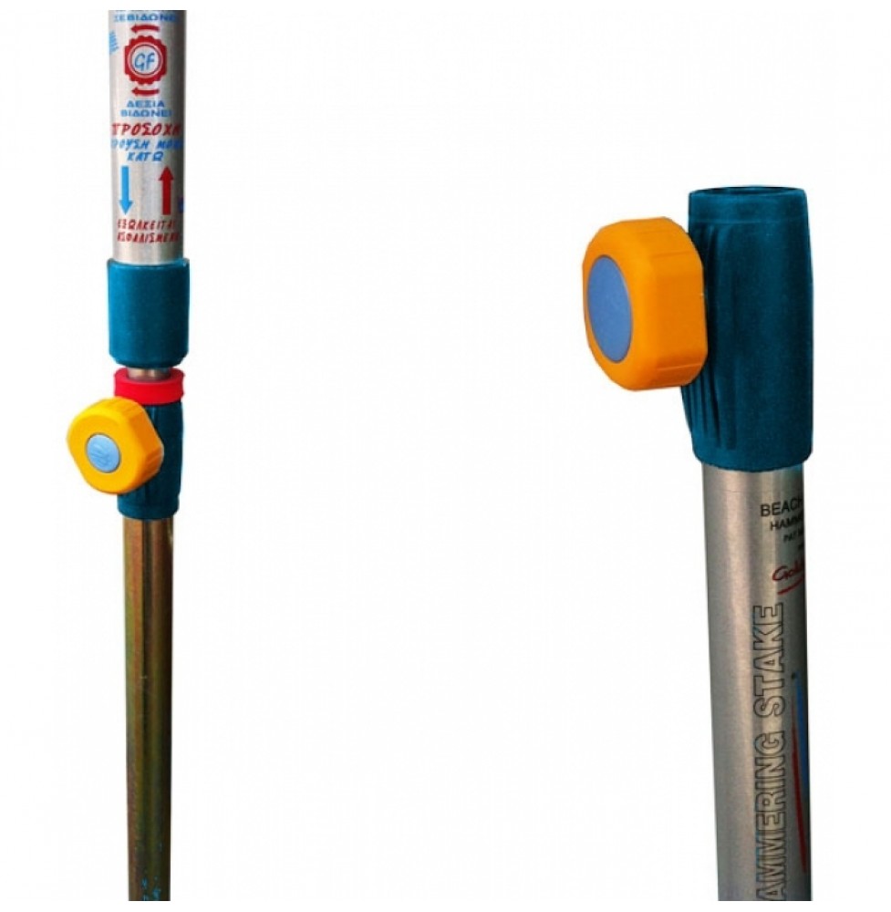 Golden Fleece Κρουστικό Κοντάρι Ομπρέλας 28mm (10104). Το “ΗΑΜΜΕRING STAKE” (Κρουστικό Κοντάρι) αντικαθιστά κάθε προηγούμενο εργαλείο, μηχανισμό ή άλλο τρόπο στήριξης της ομπρέλας θαλάσσης χωρίς να προσθέτει τίποτε περισσότερο από ότι υπήρχε και πριν, εφ’όσον το μόνο που κάνουμε είναι να αντικαταστήσουμε το παλιό κοντάρι με το νέο Κρουστικό “HAMMERING STAKE”. Χαρακτηριστικά: