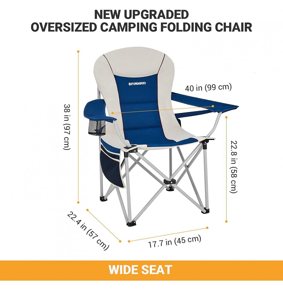 Φορητή υπερμεγέθη πολυθρόνα κάμπινγκ Η υπερμεγέθη πτυσσόμενη καρέκλα βάρους 9,7 λίβρες. Το μέγεθος ρύθμισης είναι 38,2×22,4×40,0 ίντσες, το πλάτος του καθίσματος είναι 40 ίντσες, το ύψος του καθίσματος εκτός εδάφους είναι 22,8 ίντσες. Το μέγεθος αναδίπλωσης είναι 38,2L x 7,5W x 6,7H ίντσες. Η ελαφριά κατασκευή το καθιστά εύκολα μετακινούμενο μαζί με τη συμπεριλαμβανόμενη τσάντα μεταφοράς βαρέως τύπου με ιμάντα ώμου - φέρνετε την καρέκλα σας από μέρος σε μέρος, θα είναι παιχνιδάκι!
