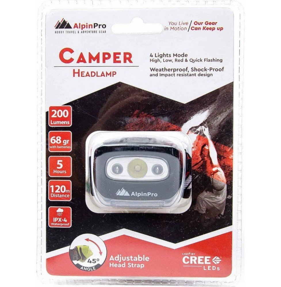 ALPINTEC ΦΑΚΟΣ ΚΕΦΑΛΗΣ CAMPER 200lumens ΑΔΙΑΒΡΟΧΟΣ CA-3178 BLACK RED
