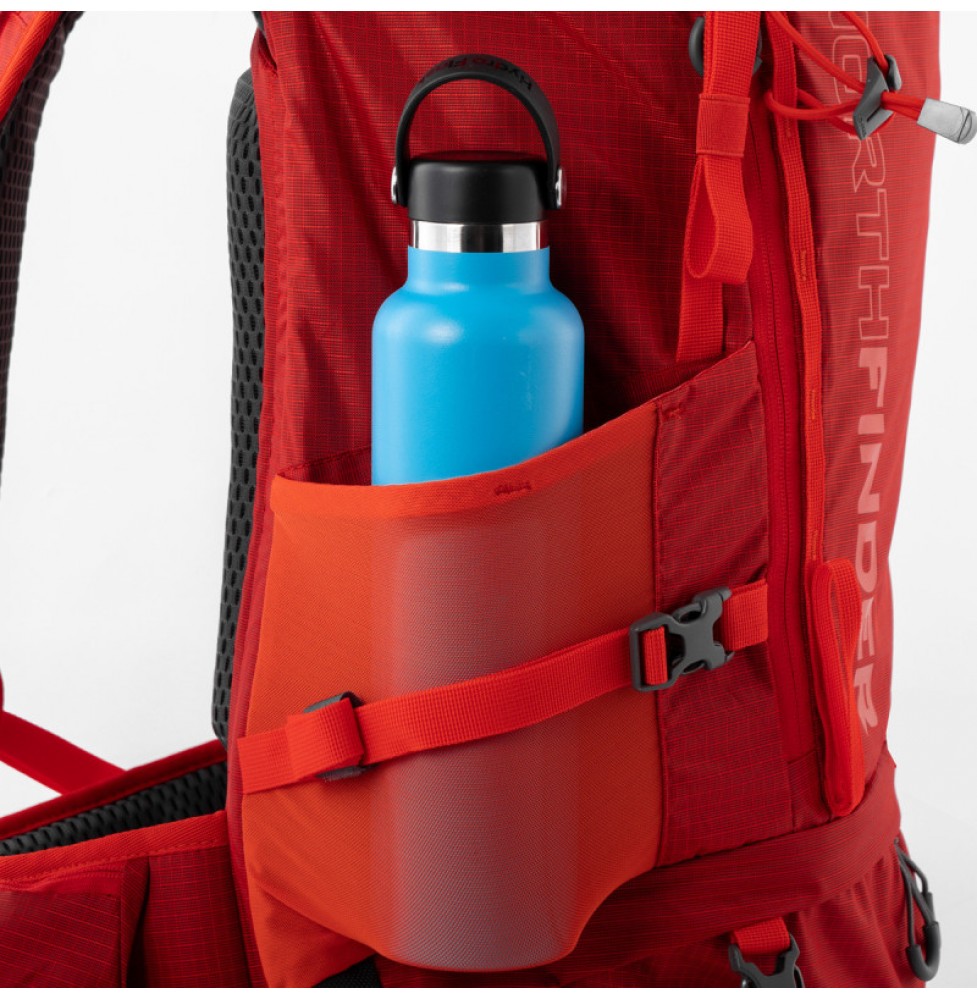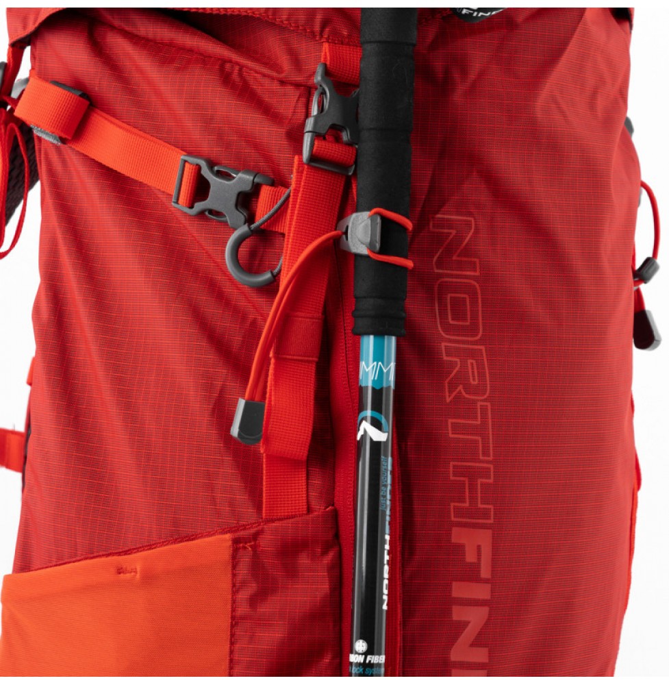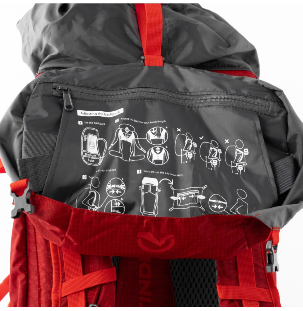 Σακίδιο πεζοπορίας 45 λίτρων για ημερήσια και πολυήμερες πεζοπορίες. Ένα απλό, μινιμαλιστικό σχέδιο με λειτουργικά gadgets χρήσιμα για όλες τις πεζοπορίες και τα ταξίδια. Το σακίδιο αποτελείται από δύο διαμερίσματα: το κύριο διαμέρισμα με πρόσβαση από πάνω για τράβηγμα που ασφαλίζεται με ιμάντα, ιδανικό για στερέωση, για παράδειγμα, σχοινί. Πρόσβαση στην κύρια θήκη και από το πλάι, με φερμουάρ από το μπροστινό μέρος. Κάτω θήκη με πρόσβαση μέσω φερμουάρ και διαχωρισμό από την κύρια θήκη μέσα στο σακίδιο πλάτης με φερμουάρ. Το κουβούκλιο έχει μια εξωτερική τσέπη με φερμουάρ με κλιπ κλειδιού και εσωτερική τσέπη με φερμουάρ. Η εξωτερική τσέπη με φερμουάρ στο μπροστινό μέρος είναι ιδανική για την αποθήκευση ενός χάρτη. Το σύστημα στήριξης πλάτης είναι άνετο και ρυθμιζόμενο σε ύψος ενώ προωθεί την κυκλοφορία του αέρα κατά τη διάρκεια της χρήσης. Μπορείτε να αφαιρέσετε το επάνω μέρος του σακιδίου και να το φορέσετε ως ξεχωριστή τσάντα χάρη στον ενσωματωμένο ιμάντα. Είναι ένα ανεκτίμητο εργαλείο, ειδικά για backpacking και μεγαλύτερα ταξίδια. Η ελαφριά ζώνη μέσης έχει τσέπες με φερμουάρ για μικροαντικείμενα και στις δύο πλευρές. Οι ιμάντες ώμου και ο ιμάντας στο στήθος είναι ρυθμιζόμενοι και περιλαμβάνουν σφυρίχτρα. Ο ιμάντας ώμου έχει θηλιά για την τοποθέτηση των γυαλιών ηλίου. Μπαστούνια πεζοπορίας και πιολέ μπορούν να τοποθετηθούν και στις δύο πλευρές του σακιδίου. Το σακίδιο έχει επίσης ενσωματωμένο και αφαιρούμενο αδιάβροχο. Οι πλαϊνές διχτυωτές τσέπες χωρούν ένα θερμός ή ένα μπουκάλι. Υπάρχει ένας ιμάντας με θηλιές στον μπροστινό πίνακα - μπορείτε να δημιουργήσετε επιπλέον χώρο αποθήκευσης χρησιμοποιώντας ένα ιμάντα ή κορδόνι. Το σακίδιο έχει επίσης πλαϊνούς ιμάντες συμπίεσης που μπορείτε να επεκτείνετε ή να συνδέσετε μέσω του σώματος του σακιδίου για να δημιουργήσετε χώρο για να τοποθετήσετε εξτρά αντικείμενα. Στο κάτω μέρος του σακιδίου θα βρείτε πρόσθετους ρυθμιζόμενους ιμάντες επίσης για τη στήριξη εξτρά αντικειμένων(πάτωμα σκηνής, σκηνή κ.λ.π). Υλικό: ελαφρύ 200 D ripstop 100% πολυεστέρας
